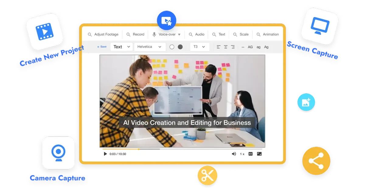 Open the Scene-Based Editor and tighten every moment. Next, add text overlays, swap visuals, and match your branding.